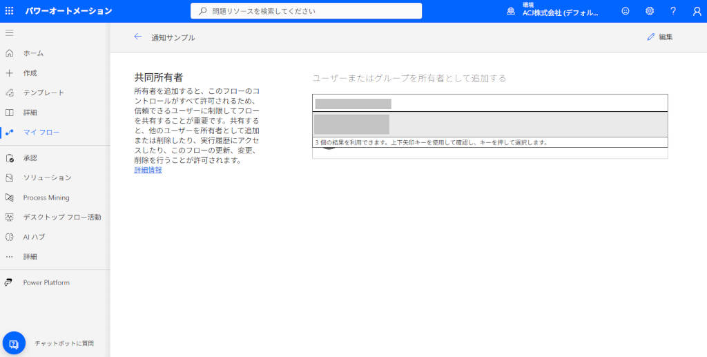 共有された側では、マイフローの自分と共有でコピーされた、クラウドフローを確認することができます。